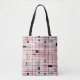 Esta Grelha Retro-Rosa e a Bag Tote All-Over-Impressão é onde o estilo vintage encontra o dia moderno. Ele apresenta uma rosa claro com kitschy, quadrados fora de kilter e retângulos em cinzas de pomba e três tons de rosa. Os blocos brancos de cor são sobrepostos e trabalhados em algumas interseções de grade. Há também retângulos pretos com linhas pretas verticais e horizontais formando um padrão de grade. Designs e quadrados de starburst pretos são colocados esporadicamente através dessa tapeçaria de cor moderna do meio século. Este design apresenta as cores rosa mais comuns encontradas nos banheiros antigos. Peguem suas botas de movimento e tocas de sino e desfrutem disso nos anos 60.
