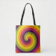 Esta imagem é uma design espiral vibrante e psicodélica feita de bandas grossas e coloridas que giram do centro para fora. As cores — amarelo, laranja, magenta, verde e roxo escuro — alternam em um padrão hipnótico repetitivo, evocando uma estética de arte retrô ou pop. O forte contraste e simetria criam uma sensação de energia e movimento, fazer-a visualmente impressionante