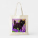 Tote Bag com um gatinho preto Gustav Klimt! Esta beleza de olhos largos se coloca num campo verde de flores roxas. Um presente pensativo para amantes de gatos e entusiastas de arte austríacos!