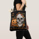 Add eerie charm to your Halloween tote bag this haunting Halloween bag featuring the phrase “Where Skulls Grin and Pumpkins Glow.”