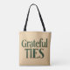 Honor your friends with Hands Fiesta Tote! This 8x8-inch tote showcases an amber-moss green gradient with intertwined hands on the front, and “Grateful Ties” in moss green with prayer beads on the back. Ideal from TrendyTeeShq!