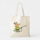 Um homem com uma mangueira de jardim pulverizando água. Este design parece realmente eficaz nesta Tote Bag