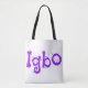 Uma bela bolsa de tote roxa, esta design apresenta "Igbo" escrito em fonte roxa divertida sobre um fundo branco. Adicione seu texto, nome, imagem etc. Peça o seu hoje!