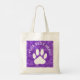 Impressão de pata branca. Sacos de tote. Versão de cor d'água púrpura. Editar texto para personalizar. Ideia de presente para amantes de cães.