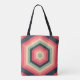 Esta imagem apresenta um padrão geométrico, em negrito, de hexágonos concêntricos radiando do centro, cada anel alternando de cor. As cores usadas são mudas, mas vibrantes — cor-de-salmão rosa, verde-menta, pêssego e um carvão profundo, criando um efeito gradiente visualmente impressionante. A simetria e a precisão dão ao design um senso de ordem e dinamismo, fazer que ele seja visualmente cativante e versátil para a arte digital, têxteis ou impressões.
