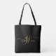 Uma bolsa de tote elegante e minimalista, com nome sans serif e elegante guião de uísque em preto.