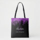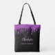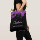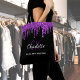 Um fundo preto elegante. Decorado com gotejamento de purpurina falsa roxa, com aparência de tinta pingando. Personalize e adicione seu primeiro nome, iniciais do monograma e nome completo. O nome é escrito com um estilo de letra manuscrita.