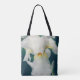 Floral themed Tote Bag featuring a photo of big white iris after rain.