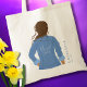 Honre sua melhor amiga com a Bolsa Tote Dama de Honra Cabelo Castanho Jaqueta de Jeans Desenhada à Mão! Esta tote da moda apresenta uma ilustração desenhada à mão de uma mulher de cabelo castanho vestindo uma jaqueta de jeans azul clara, com as palavras "Dama de Honra" elegantemente escritas em letras brancas na parte de trás. À direita da ilustração, há um espaço personalizável para o nome da dama de honra e a data do casamento, exibidos em uma fonte moderna azul poeirenta. Perfeita como um presente para a braço direito da noiva, esta tote é um item elegante e sentimental para festas de despedida de solteira, chás de panela e celebrações do dia do casamento.