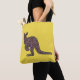 Silhueta de canguru australiana em padrão de mosaico tribal/étnico em fundo amarelo