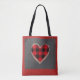 Esta sacola caracteriza um fundo cinzento de serapilheira com afiação vermelha de serapilheira e no centro um coração da xadrez do búfalo vermelho e preto com o laço do vintage do falso que afia o. Projetado pelo ©Tim mundialmente famoso Coffey do artista.