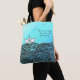 Saco de Tota Aquamarine com um barco de papel desenhado a lápis. Não é uma aventura se você sabe aonde vai... As palavras e a cor de fundo podem ser personalizadas.
