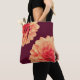 Uma bolsa de tote de burgundy elegante. Decorado com lindas flores de dália laranja. Personalize com seu monograma / inicial.