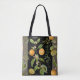 Uma bela vintagem inspirou um saco de roupas com ilustrações botânicas vintage de flores de laranja, laranjas e limões fatiados em fundo preto. Personalizável na sua escolha de cor de destaque de segundo plano. (Este saco é mostrado em preto com bordas neutras de sotaque na frente e atrás - Adicione sua cor favorita a ambos os lados para tornar este saco realmente seu!). Uma bolsa de tote reutilizável perfeita que vem na sua escolha de tamanho e opções de estilo. Muito doce!