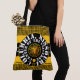 Bolsa do ombro (grande) com design de dente preto e dourado na frente com círculos concêntricos preto, branco e ouro design e "COLUMBIA, MISSOURI CENTER DO UNIVERSO" e o Excelente Selo do Missouri no centro e "Columbia, MO" à direita em roteiro com Y-NOT-ME. Esta design é um grito para Columbia, Missouri, uma cidade universitária excelente.