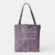 A Mãe de Casamento do Groom, nome personalizado de design para as malas. Bonito tons de lavanda roxa, mauve, padrão floral lilás personalizam a tipografia. Clássico, chico, elegante, moderno, moderno, na moda, lindo metal suculento. Para alterar o script, clique em editar design. Imagem copyright Marg Seregelyi Photography.