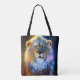 Uma fantasia, ilustração mágica de um leão com energia cósmica brilhante.