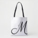 LETRA M - Monica. Mude o texto facilmente! Um saco preto e branco, simples e na moda. Comprador de estilo moderno com seu NOME.