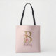 Bolsa Tote Letra personalizada B Dourado Folha Rosa Bege Flor
