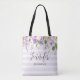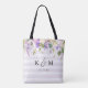 Bolsa Tote Lilás Floral e Listras Monograma de Dama de Honra