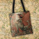 Esta bela bolsa de tote estilo Art Nouveau tem uma imagem de uma fada alada sobre ela, reminiscente da arte de Alphonse Mucha. As cores muda e as linhas fluentes do design são um estilo reconhecível nas imagens de Art Nouveau.