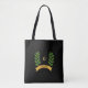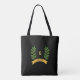 Lindas folhas de baía verde-moderna e fita de ouro em Tote Bag preto. O texto pode ser personalizado.