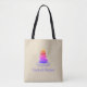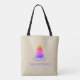 Saco bege elegante com lindas pedras desejáveis em tons multicoloridos sobre três círculos concêntricos e texto personalizado "Pedras Sagradas".