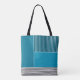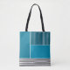 Este saco de totas tem um design geométrico de um retângulo de metal grande no canto superior esquerdo, faixas de metal mais escuras no canto superior direito, um retângulo mais leve e menor sob as listras e linhas pretas na parte inferior. Se você gosta do design, mas prefere cores diferentes, me mande mensagem.