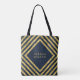 Bolsa Tote Linhas quadradas Dourados do falso azul elegante