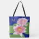 Bolsa Tote Lírios de água cor-de-rosa monogramas, azuis