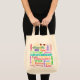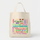 Está aqui uma bolsa de compra das canvas com uma lista impressa divertimento do mantimento. Reusar, reciclar, e lotes pstos dos mantimentos nesta sacola acessível.