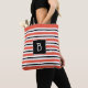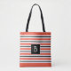 Bolsa Tote Listras Branco Preto e Laranja Vermelho Monogramad