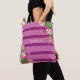 Cores divertidas com rosa com riscas cor-de-rosa brilhante e saco de ombro personalizado com design floral.