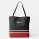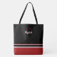 Bolsa Tote Listras Monograma Modernas Preto Vermelho