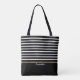 Bolsa Tote. Listrada em preto e branco pronta para você personalizar. ⭐Este Produto é 100% Personalizável. Gráficos e/ou texto podem ser adicionados, excluídos, movidos, redimensionados, alterados, girados, etc... 99% dos meus designs na loja são feitos em camadas. Isso facilita para você redimensionar e mover os gráficos e textos para que eles se ajustem perfeitamente a cada produto. Você também pode "TRANSFERIR DESIGN" para outros produtos da Zazzle e ajustar o design para se adequar à maioria dos itens da Zazzle. (botão está na parte inferior direita da página) Alguns dos gráficos de texto têm caixas prontas para serem preenchidas ou você pode clicar no botão PERSONALIZAR para adicionar, mover, excluir, redimensionar ou alterar qualquer uma das fontes ou gráficos. O design é feito com gráficos vetoriais e/ou digitais de alta resolução para uma impressão profissional. ⭐NOTA: (ESTE É UM PRINT. Todos os designs de produtos da Zazzle são "impressões" a menos que seja indicado de outra forma na área "Sobre Este Produto") O design será impresso EXATAMENTE como você vê na tela e no produto... então, por favor, certifique-se de que, ao fazer alterações no redimensionamento de qualquer um dos gráficos