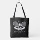Personalize este design para sua equipe do tênis, clube de ténis, uma fuga da viagem de fim de semana do tênis ou para dar a todo o fã de tênis. As características de design dois entrecruzaram raquetes de tênis, uma bola de tênis, uma bandeira e três linhas de texto feito sob encomenda ajustadas contra um fundo preto. (Você pode igualmente mudar a cor do fundo clicando em "personaliza o" e então o eyedropper pequeno.) O design parece em ambos os lados do bolsa e é muito fácil de personalizar. Generoso em tamanho, o bolsa é perfeito para levar toda sua engrenagem do tênis!!