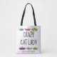 Para as senhoras que remam os rios em barcos de pesca... ou os remam em gatos de remo! Este saco de diversão diz "Senhora Louca de Gato... um gato nunca é suficiente." e mostra ilustrações de várias raças diferentes de Gato BOAT!