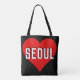 Grande coração vermelho e a cidade de Seul. Legal design.