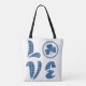 Bolsa Tote Love Shamrock Plaid Blue Black Classic Pattern