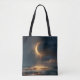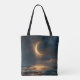 Bolsa Tote Lua do Crescente Ouro Surreal acima do oceano