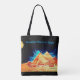 Você gosta do egípcio e desfruta da incrível arte da arquitetura? Esta bela sacola de tote vai excelente com o seu estilo egípcio. A bolsa de tote impressão-all-over tem uma imagem impressa de uma pintura acrílica de pirâmides egípcias com uma vista cênica à luz do luar.