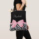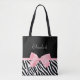 Obtenha seu fashionista sobre com esta sacola animal do impressão do chique e do na moda. Este design com um impressão preto e branco na moda da zebra e uma luz feminino macia - a fita cor-de-rosa amarrada em um arco feminino bonito pode ser personalizada adicionando o nome de toda a menina feminino. Imagem impressa do plano, fita nao real.