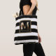 Bolsa Tote M Floral Monograma | Listras Preto Branco Dourado