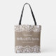 A mãe do noivo vai adorar esta bela sacola de tote personalizada, com um conjunto de bordas rústicas contra um fundo falso. Adicione o nome da mãe do noivo e o texto personalizado para personalizar. Perfeito para essências de casamento de carregando como maquiagem, calçados, roupas e muito mais. Funciona bem para casamentos de chic no campo rústico ou no país.