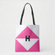 Bolsa de mão de triângulos magenta e branco modernos. A letra H pode ser personalizada.