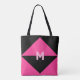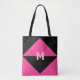 Magenta moderna e triângulos pretos Tote Bag. A letra M pode ser personalizada.