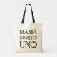 Diga a sua mãe de língua espanhola que sabe que é a melhor com uma bolsa de tote com as palavras "Mamá Número Uno" ("Mãe Número Um" em Espanhol) em uma fonte geométrica moderna em ambos os lados. A tipografia negra legal faz um design de na moda.