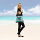 Bolsa Tote Manta Ray on Teal Faux Brushed Metal Monogrammed