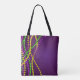 Esta bolsa de tote, coberta de roxo com miçangas de Mardi Gras, é apenas a coisa de carregar dos seus divinos.