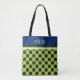 Bolsa Tote Marinho Bolinhas azuis no Monograma do Verde limão